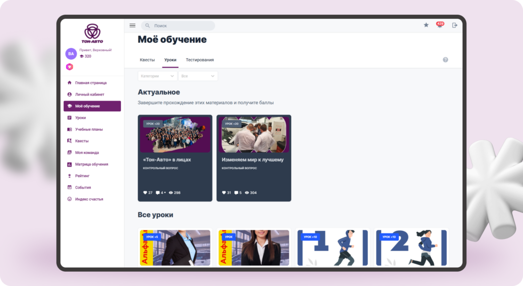 За три года работы с платформой «Тон-Авто» удалось не просто оцифровать обучение, а выстроить полноценную систему развития сотрудников. В 2024 году доступ к обучающим материалам получили 249 человек — это практически весь фронт-лайн компании и их руководители.