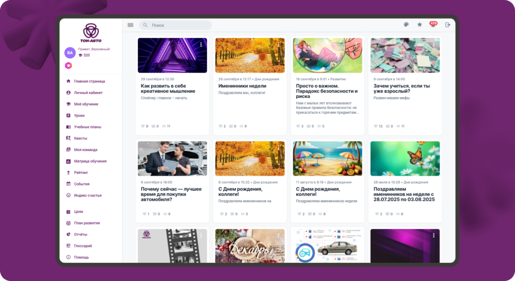 В ближайших планах «Тон-Авто» — запуск оценки 360 градусов. Модуль уже есть на платформе, команда только начинает с ним работать. Также планируют развивать игровые форматы: использовать «Умный ринг» и другие инструменты для вовлечения. И, конечно, расширять библиотеку для руководителей — уже сейчас сотрудники спрашивают, есть ли на платформе конкретные книги, которые они хотели бы прочитать.
