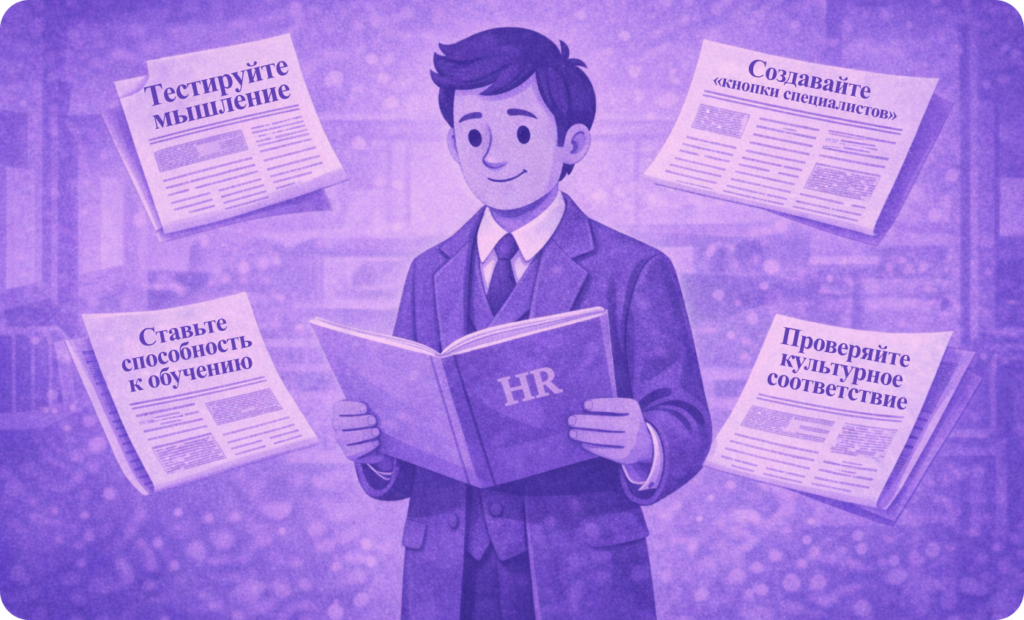1. Тестируйте мышление, а не знания. Легенда с солонкой — это метафора. Реальный инструмент — кейс-интервью, где кандидат решает задачу «вслух». Вы смотрите не на ответ, а на то, как он размышляет: пробует гипотезы, задает уточняющие вопросы, признает пробелы в знаниях.