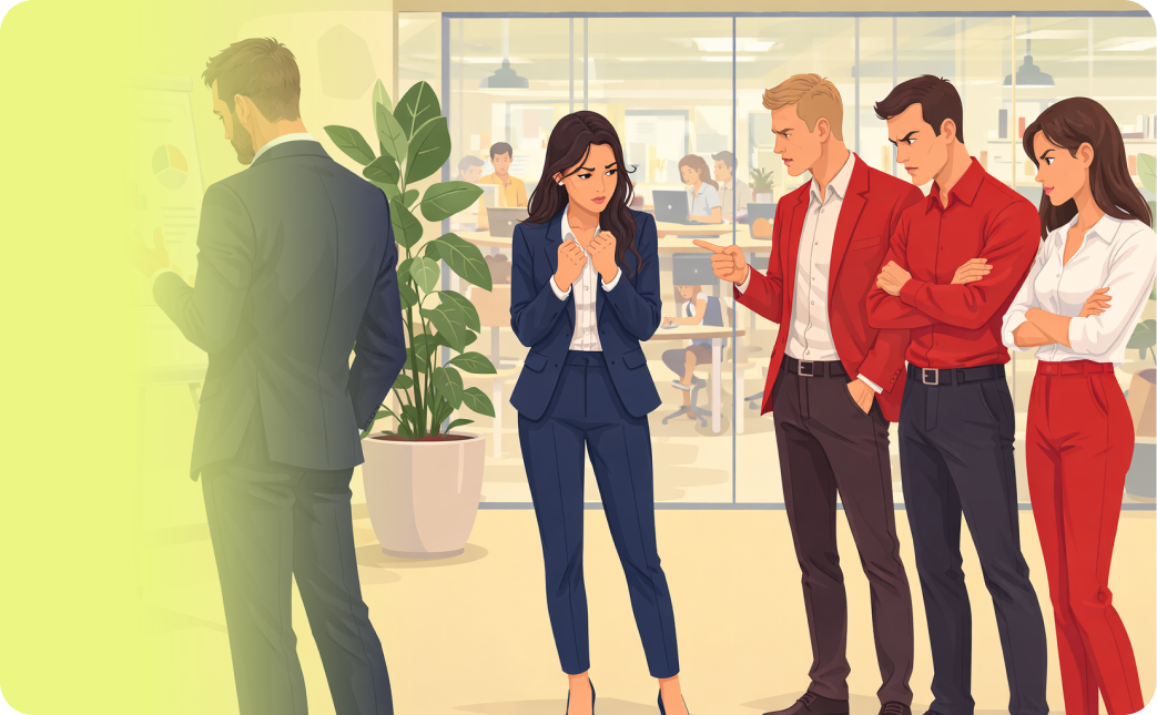 Последствия: сотрудница остается в глазах коллег виноватой. Молчание руководителя — это сигнал: «Я снимаю с себя ответственность за твою репутацию». Доверие разрушается.