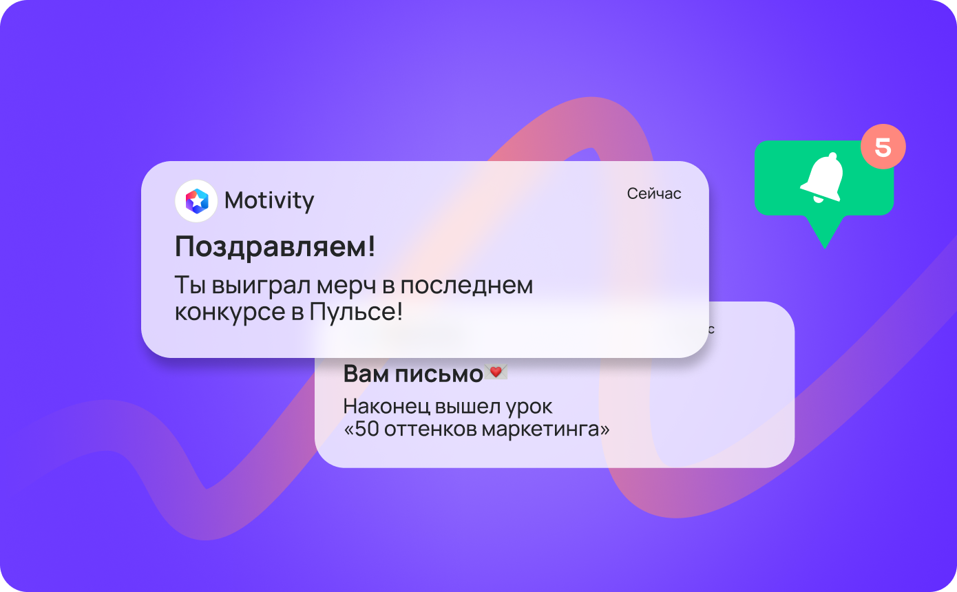 Помимо автоматических системных уведомлений — они приходят, к примеру, когда на платформу загрузили урок или новость — в Motivity вы можете настроить пуши вручную из панели администрирования.