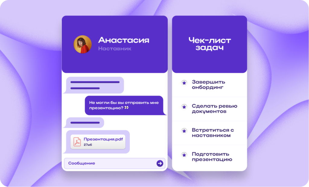 - файлы и диалоги остаются доступными, даже если наставник или HR занят.