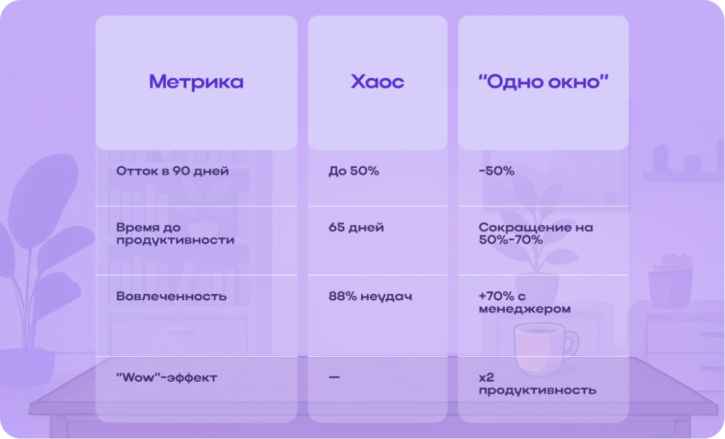 — Меньше хаоса — больше доверия. Понятный старт превращает новичка в уверенного и лояльного участника команды, а не в человека, который «выживает» в системе.