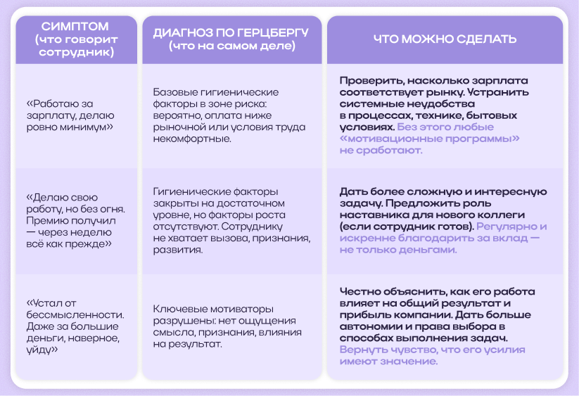 — Теория Герцберга показывает, что одной зарплаты недостаточно для устойчивой мотивации сотрудников.