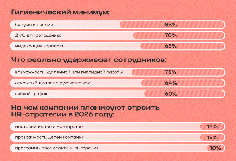 — Нефинансовая мотивация выходит в лидеры. Главные драйверы: удаленка и гибрид, открытый диалог с руководством, гибкий график.