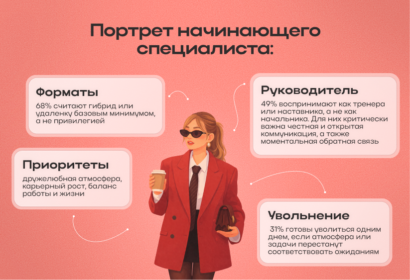— Поколение Z диктует правила. Гибрид — база, руководитель — наставник, атмосфера — приоритет. 31% готовы уволиться в любой момент, если ожидания не совпадают.