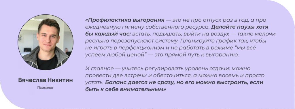 - Говорите. С коллегами, с руководителем, с HR-партнером. Выгорание не лечится молчанием. Иногда достаточно услышать слова поддержки, чтобы стало легче.