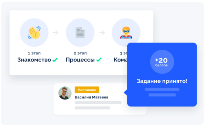 | Полезные материалы — будь то обучающие статьи, техника безопасности или образец заявления на отпуск — всегда под рукой и в быстром доступе через приложение. | Персонал проходит обучение и оценку по методу Оценка 360, а данные автоматически преобразуются в отчёты, что помогает отслеживать прогресс по развитию кадров и своевременно вносить изменения в учебные планы. |